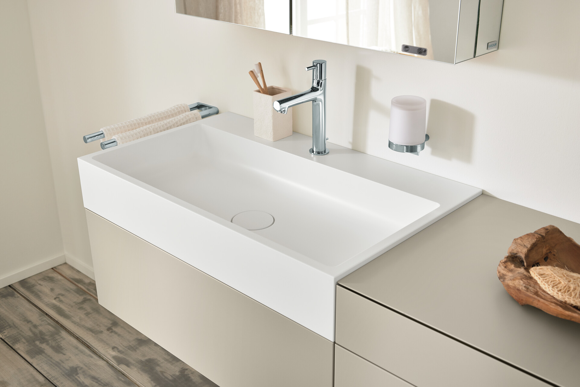 Das puristische Design von white unterliegt keinen Trends, sondern besticht auch über Jahrzehnte hinweg. Der Aspekt der Langlebigkeit findet sich auch in der Auswahl der Materialien wieder. Mit dem Einsatz von Mineralwerkstoff, Echtholz und ökologischen Lacken wird ein nachhaltiger Akzent gesetzt.